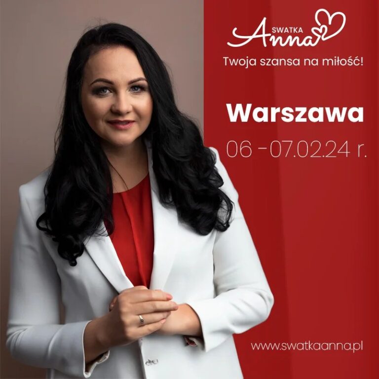 Jeśli chcesz skorzystać z mojej pomocy przy poszukiwaniu miłości. Jesteś z okolic Warszawy lub możesz dojechać do stolicy. Zapraszam 6 i 7 lutego na zapis stacjonarny. Ilość miejsc ograniczona. 11 rok łączę ludzi w pary, jestem swatką, coachem relacji, autorką…